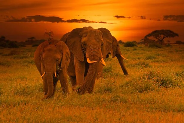 The African elephant can be identified by its long front legs and enormous, heat-radiating ears. Aside from its majestic, flexible trunk, other striking characteristics include its ever-expanding tusks, which are present in both males and females; the tough, wrinkled skin, which aids in the preservation of moisture in arid African circumstances; and its wrinkled skin.